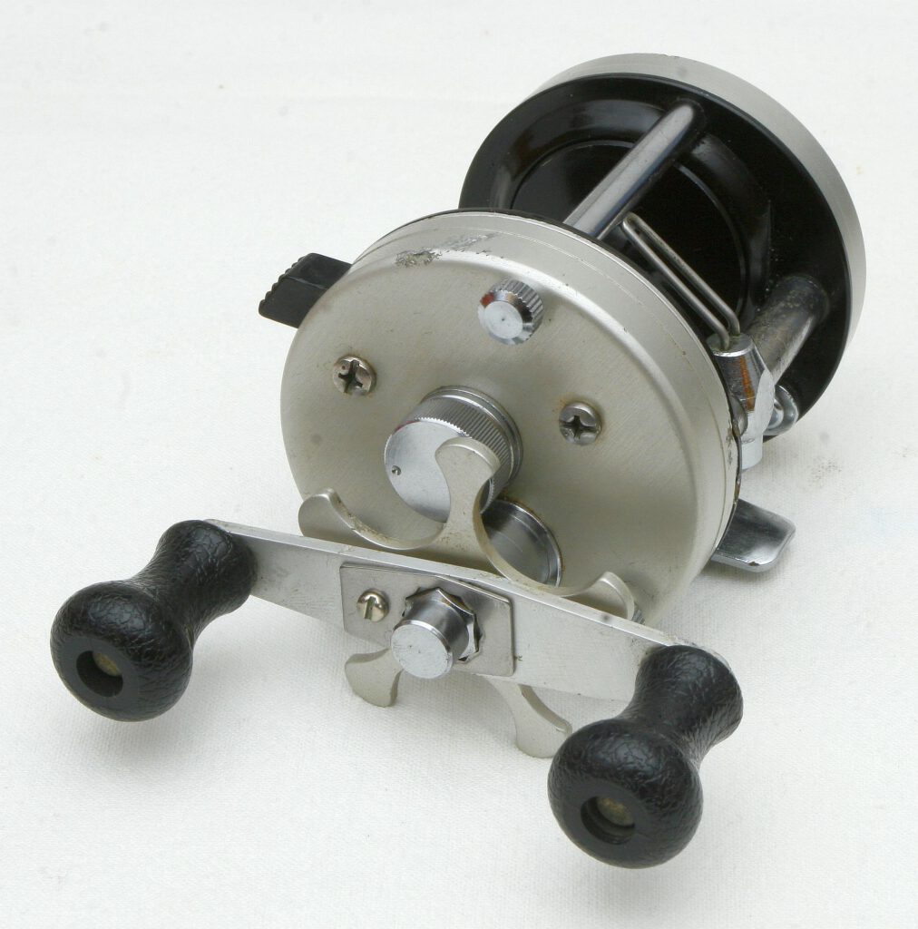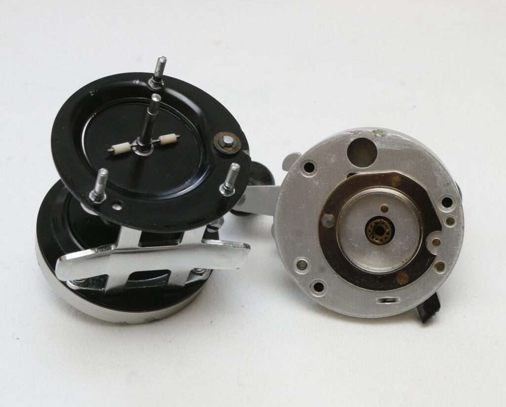 I’m not quite sure what to make of this fishing reel. It’s a DAM Quick 800LW Champion. These reels usually have an anodized aluminum base, but this one has a nickel-plated brass base, and oddly enough, it doesn’t have „Japan“ printed on it. At first, I thought, „Okay, maybe someone used an old frame?“ But no, it has black aluminum side plates. I have no idea. Perhaps one of you has some insight?