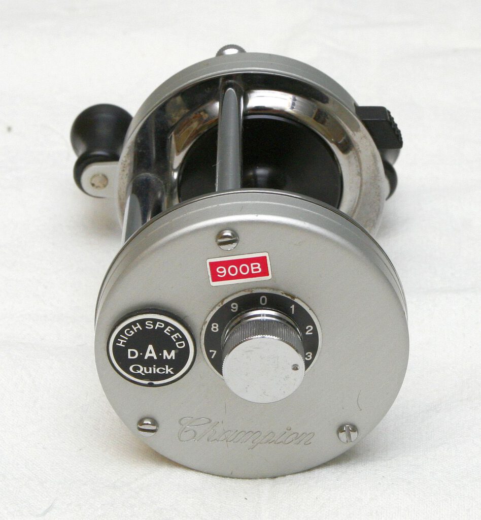 The DAM Quick 900B Champion is the largest reel in this series. It’s the same size as the ABU Ambassadeur 7000. The 900B is extremely rare; most collectors have never even seen one! This particular reel is from the „regular“ series, as it already has the new 900B plaque and sticker.